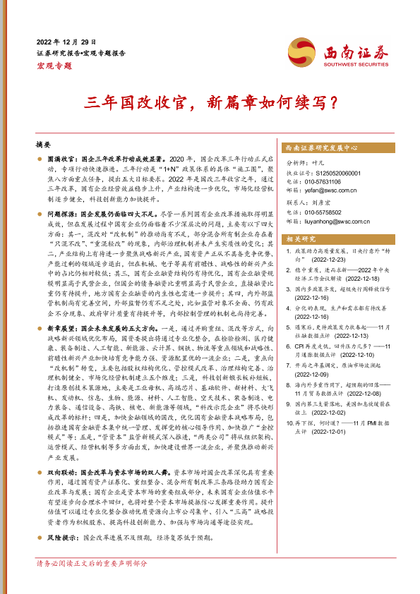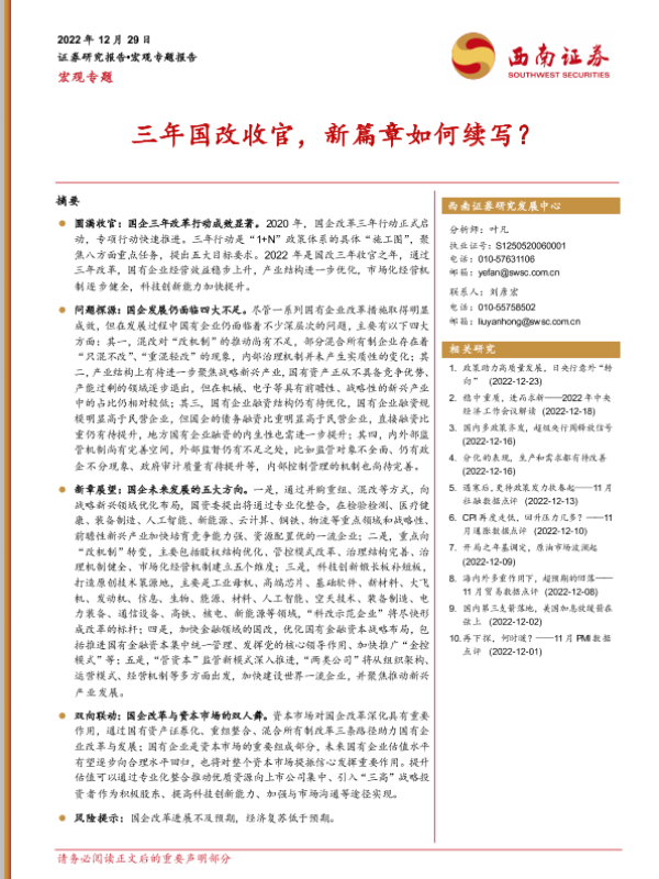 【西南证券】【20221229】宏观专题:三年国改收官,新篇章如何续写?-18页