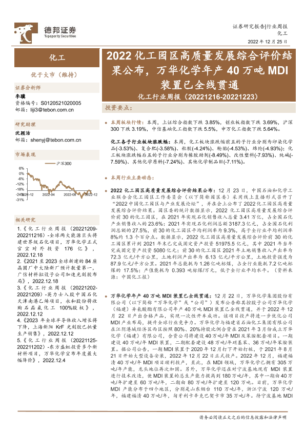 【德邦证券】【20221225】化工行业周报:2022化工园区高质量发展综合评价结果公布,万华化学年产40万吨MDI装置已全线贯通-25页