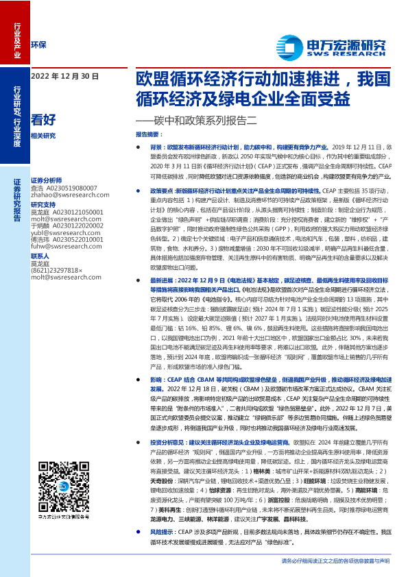【申万宏源】【20221230】环保行业碳中和政策系列报告二:欧盟循环经济行动加速推进,我国循环经济及绿电企业全面受益-28页