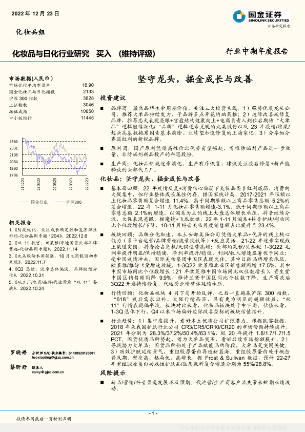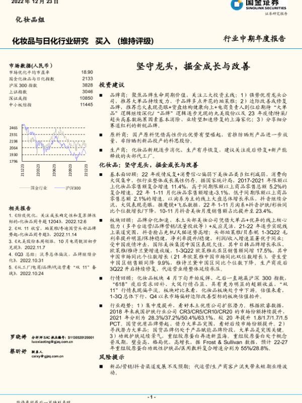 【国金证券】【20221223】化妆品与日化行业中期年度报告:坚守龙头,掘金成长与改善-22页
