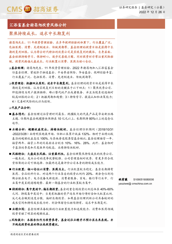 【海通证券】【20221226】汇添富基金谢昌旭投资风格分析:聚焦持续成长,追求中长期复利-16页