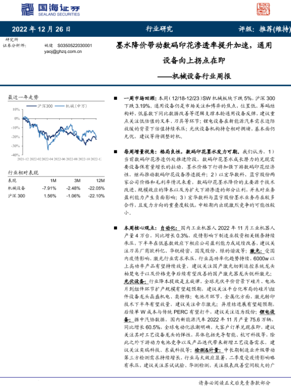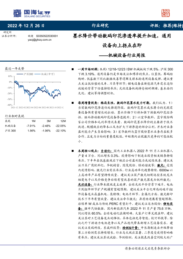 【国海证券】【20221226】机械设备行业周报:墨水降价带动数码印花渗透率提升加速,通用设备向上拐点在即-25页
