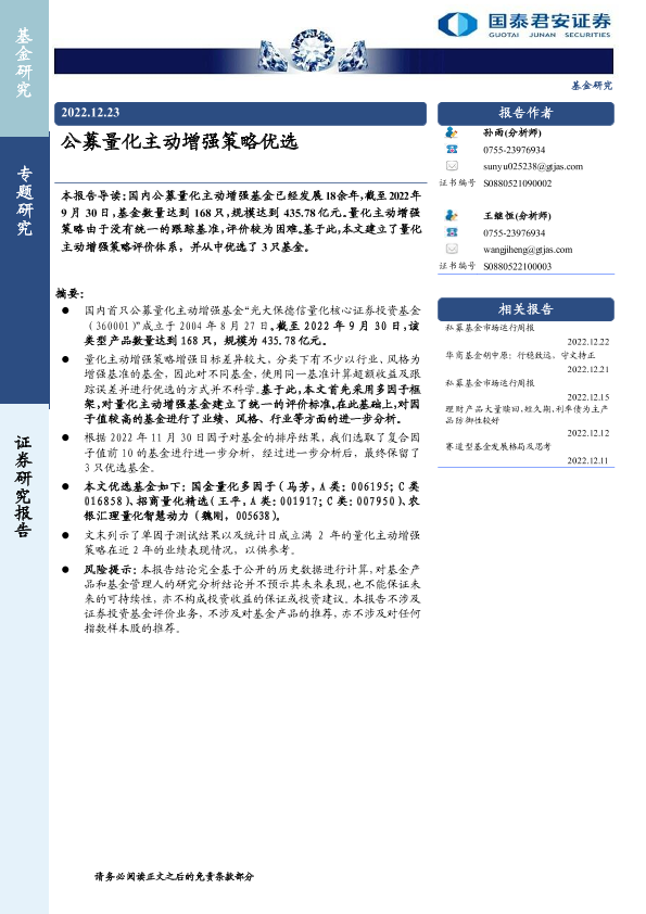 【国泰君安证券】【20221223】公募量化主动增强策略优选-21页