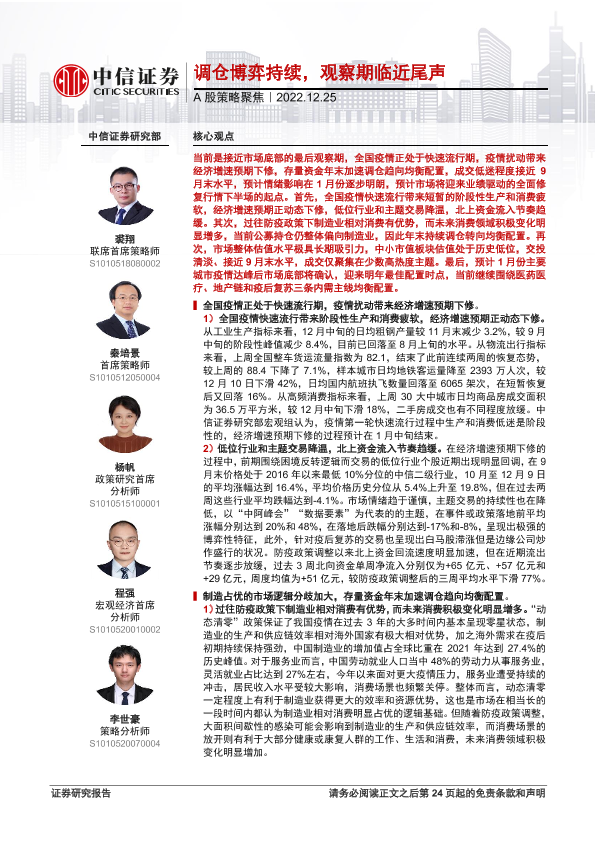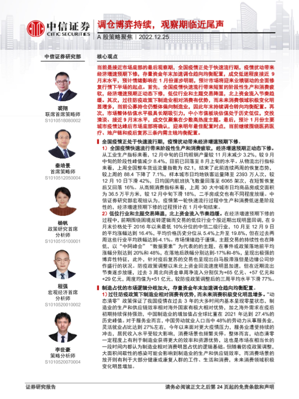 【中信证券】【20221225】A股策略聚焦:调仓博弈持续,观察期临近尾声-26页