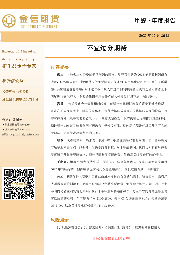 【金信期货】【20221226】甲醇·年度报告:不宜过分期待-16页