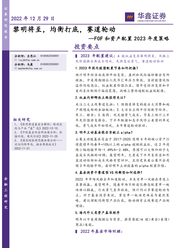 【华鑫证券】【20221229】FOF和资产配置2023年度策略:黎明将至,均衡打底,赛道轮动-33页