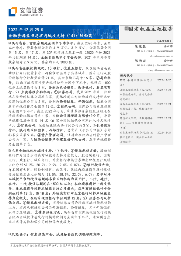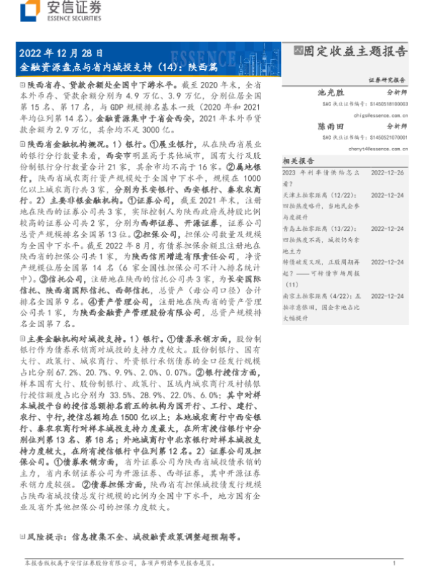 【安信证券】【20221228】金融资源盘点与省内城投支持(14):陕西篇-18页