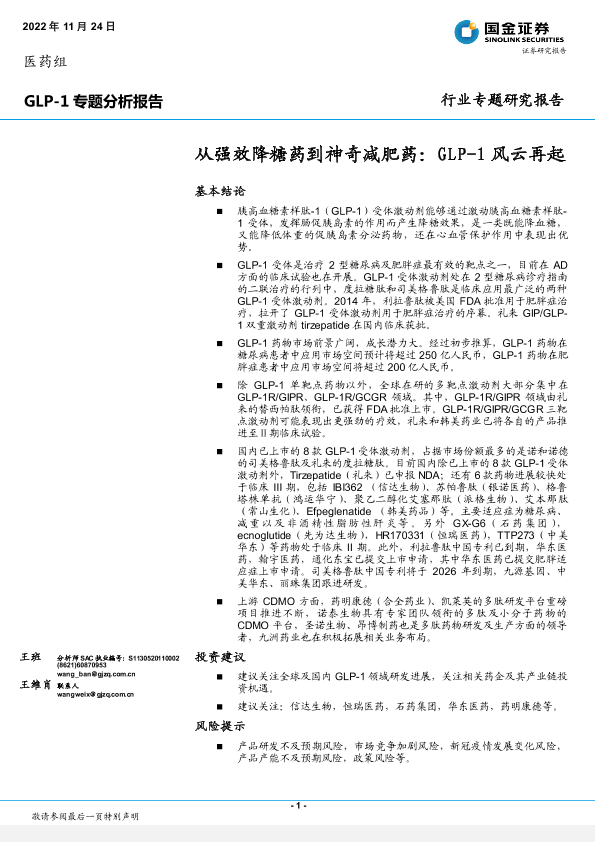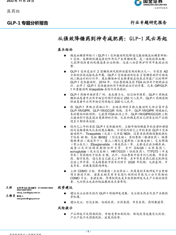 【国金证券】【20221124】GLP-1专题分析报告:从强效降糖药到神奇减肥药:GLP-1风云再起-33页