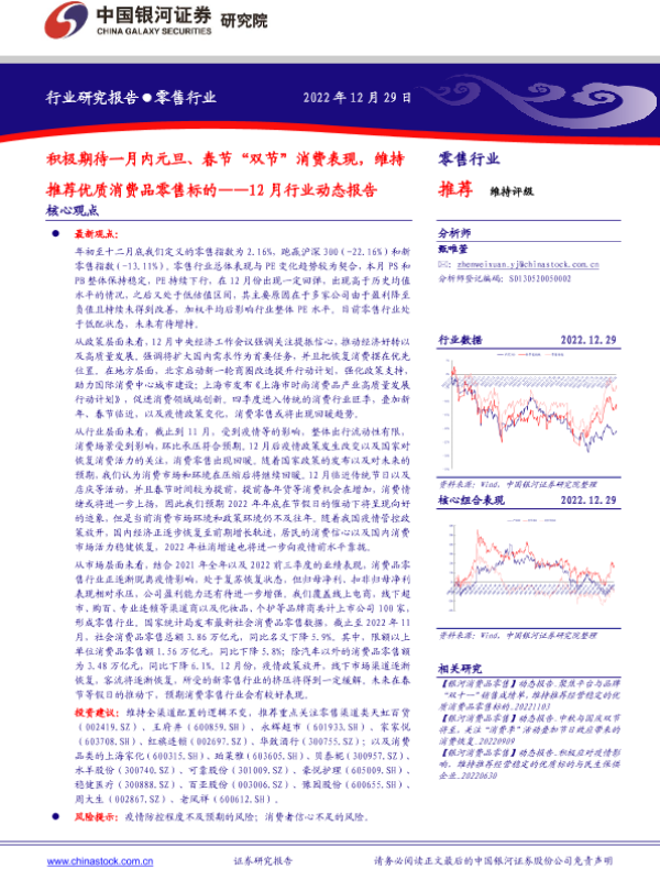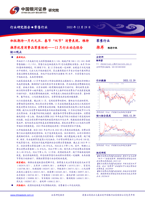【银河证券】【20221229】零售行业12月行业动态报告:积极期待一月内元旦、春节“双节”消费表现,维持推荐优质消费品零售标的-28页