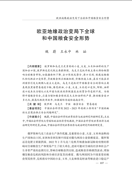【中国社会科学院】【20220401】欧亚地缘政治变局下全球和中国粮食安全形势-18页