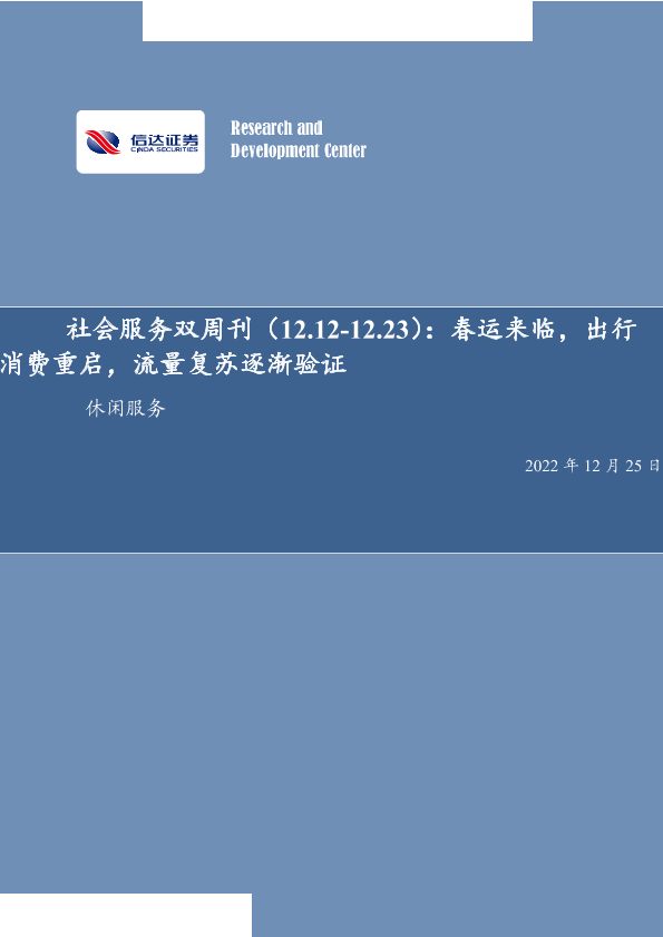 【信达证券】【20221225】社会服务行业双周刊:春运来临,出行消费重启,流量复苏逐渐验证-20页