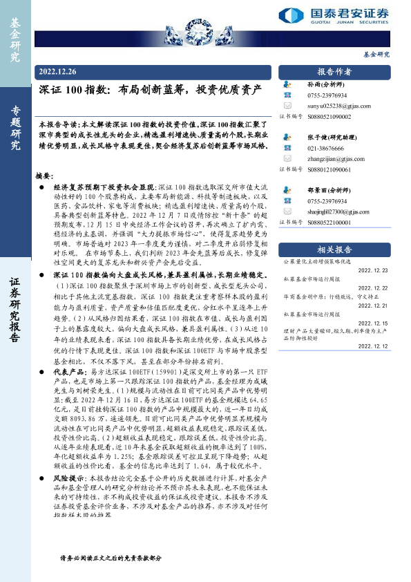 【国泰君安证券】【20221226】深证100指数:布局创新蓝筹,投资优质资产-16页
