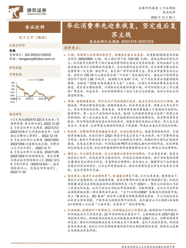 【德邦证券】【20221225】食品饮料行业周报:华北消费率先迎来恢复,坚定疫后复苏主线-18页