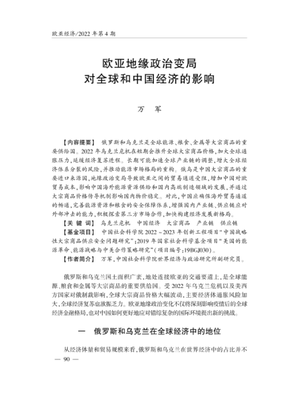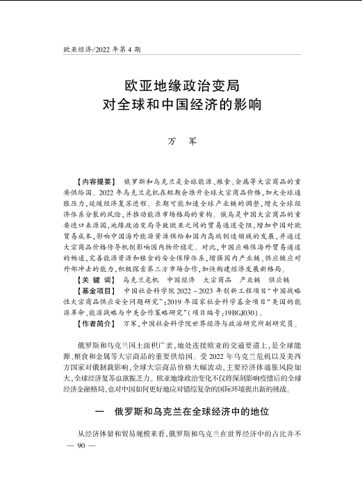 【中国社会科学院】【202204】欧亚地缘政治变局对全球和中国经济的影响-17页