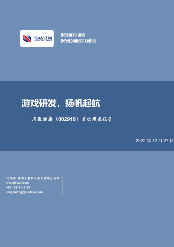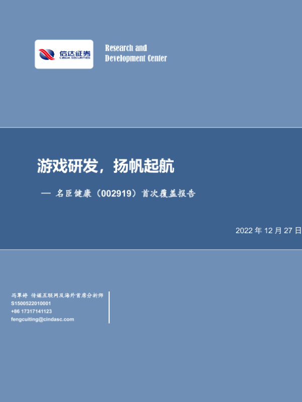 互联网传媒 名臣健康 游戏研发 证券分析 首次覆盖