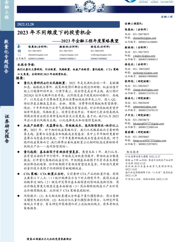 【国泰君安证券】【20221228】2023年不同维度下的投资机会——2023年金融工程年度策略展望-36页