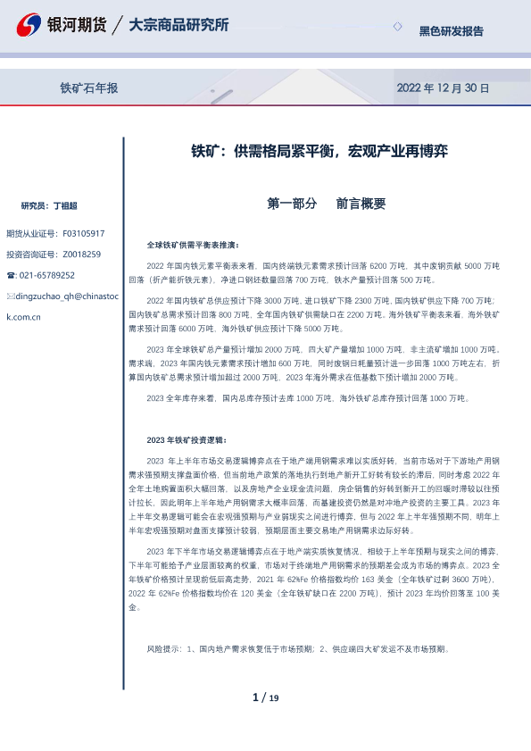 【银河期货】【20221230】铁矿石年报:铁矿,供需格局紧平衡,宏观产业再博弈-19页