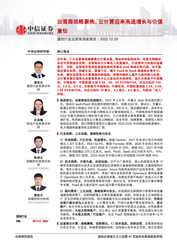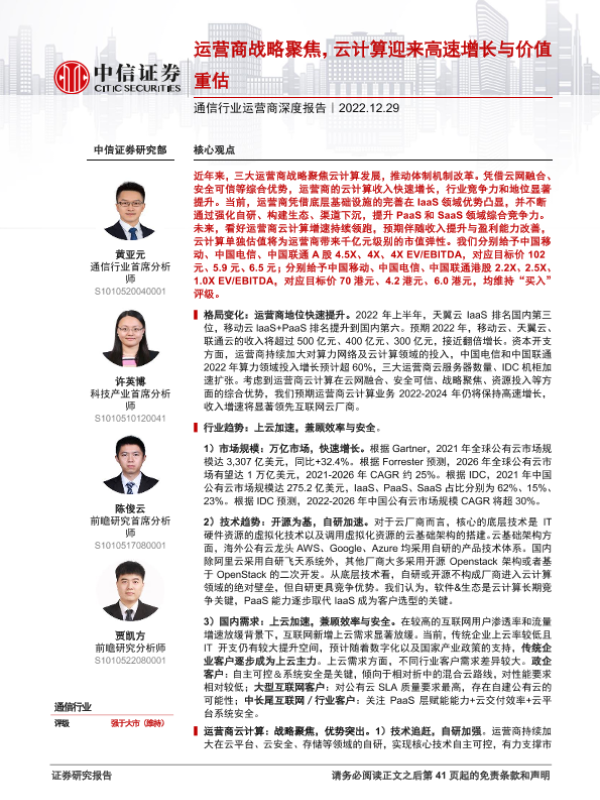 【中信证券】【20221229】通信行业运营商深度报告:运营商战略聚焦,云计算迎来高速增长与价值重估-42页