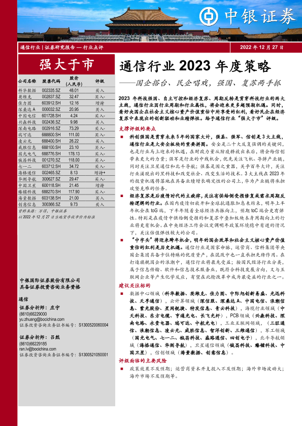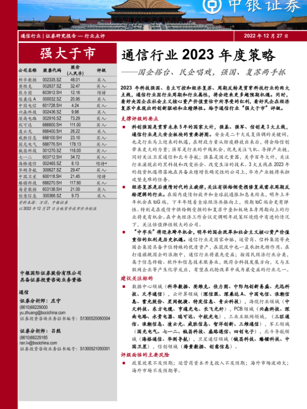 【中银证券】【20221227】通信行业2023年度策略:国企搭台、民企唱戏,强国、复苏两手抓-82页