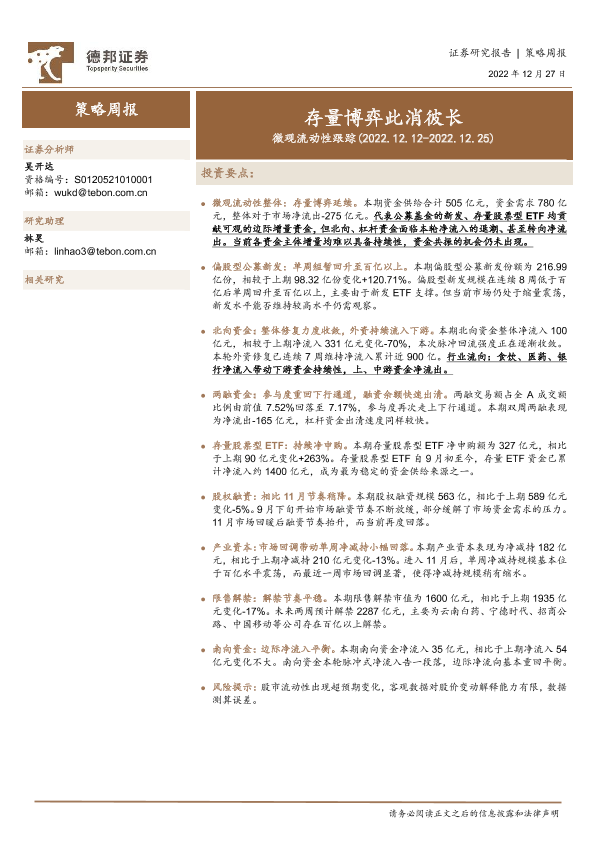【德邦证券】【20221227】微观流动性跟踪:存量博弈此消彼长-15页