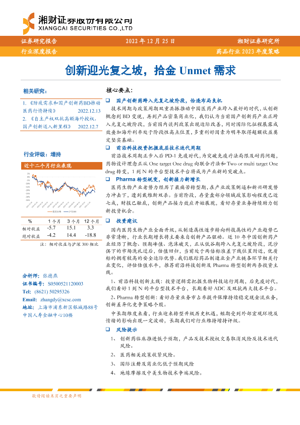 【湘财证券】【20221225】药品行业2023年度策略:创新迎光复之坡,拾金Unmet需求-31页