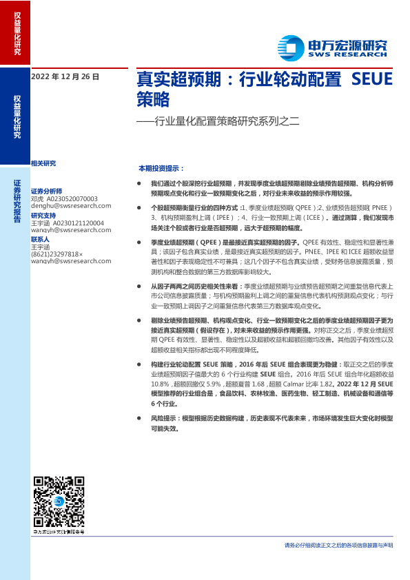 【申万宏源】【20221226】行业量化配置策略研究系列之二:真实超预期,行业轮动配置SEUE策略-22页