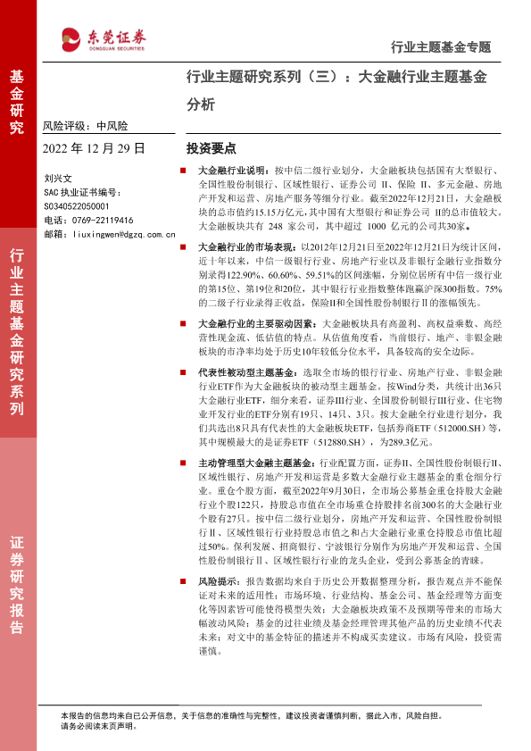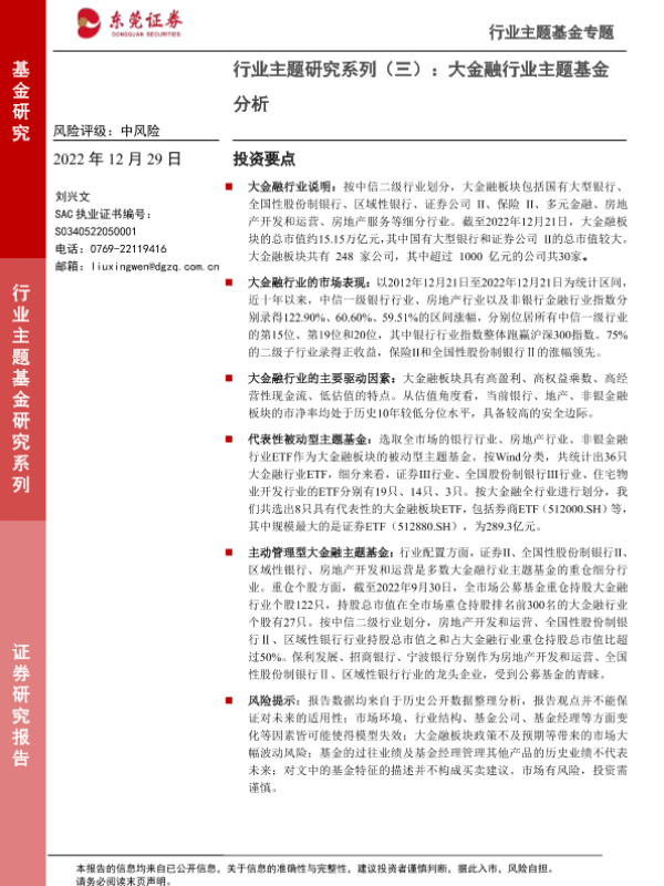 【东莞证券】【20221229】行业主题研究系列(三):大金融行业主题基金分析-16页
