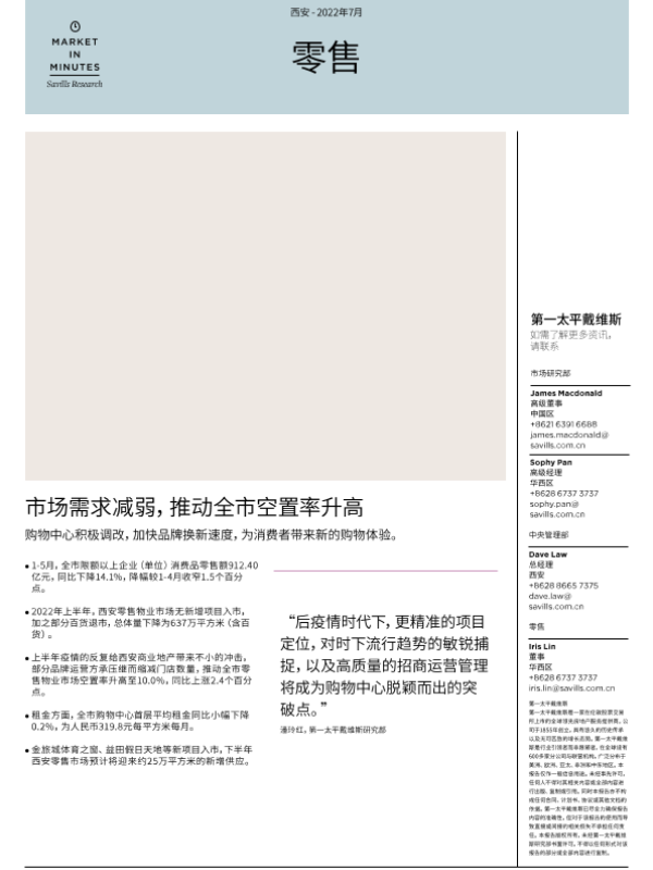 商业地产 新增供应 疫情冲击 西安零售市场 购物中心租金