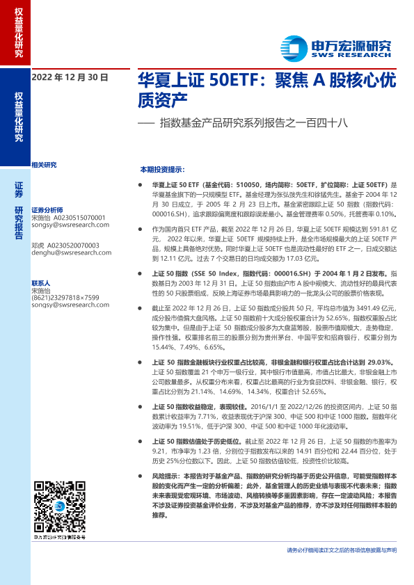 【申万宏源】【20221230】指数基金产品研究系列报告之一百四十八:华夏上证50ETF,聚焦A股核心优质资产-16页