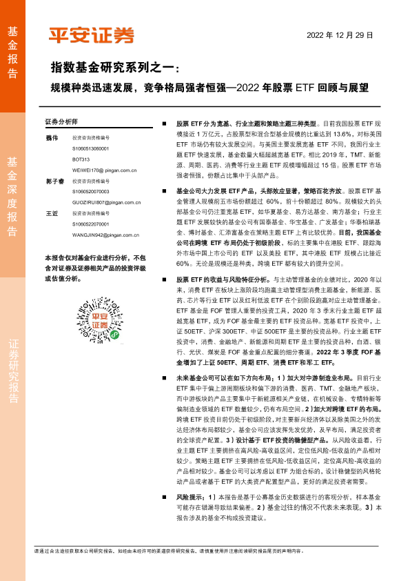 【平安证券】【20221229】指数基金研究系列之一:2022年股票ETF回顾与展望,规模种类迅速发展,竞争格局强者恒强-24页