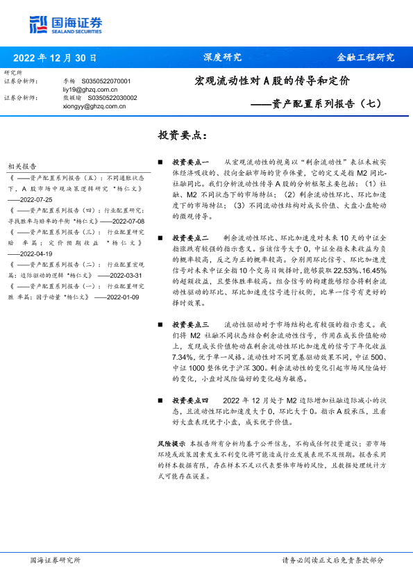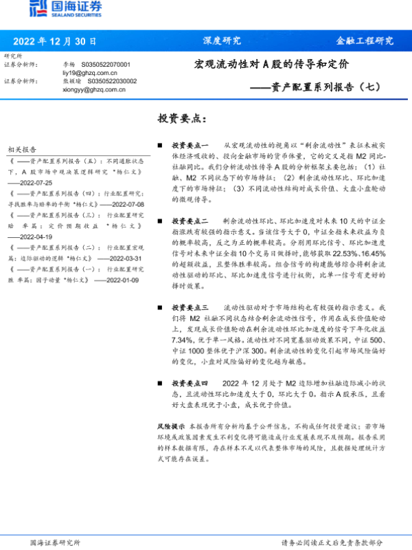 【国海证券】【20221230】资产配置系列报告(七):宏观流动性对A股的传导和定价-27页