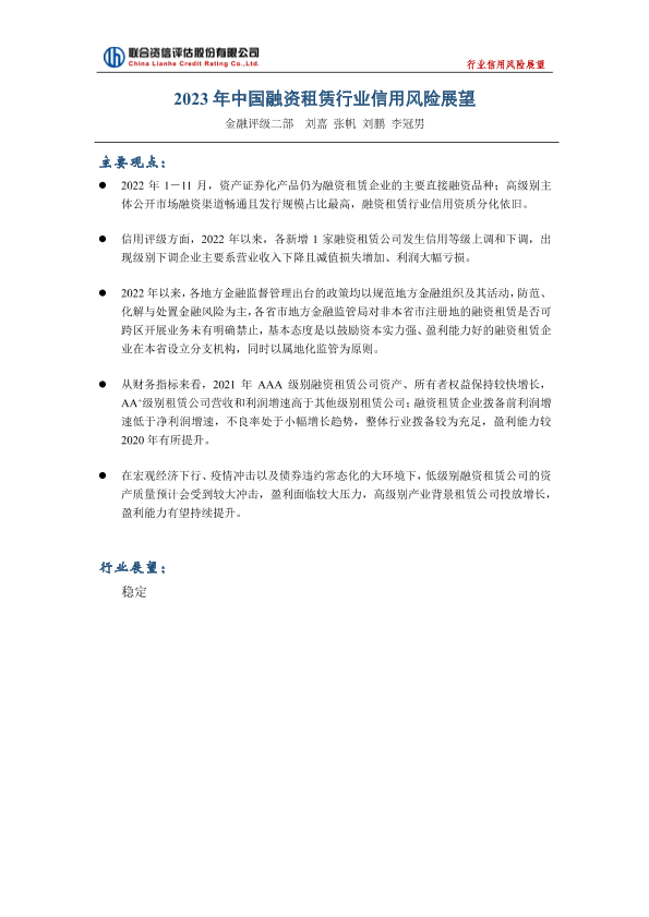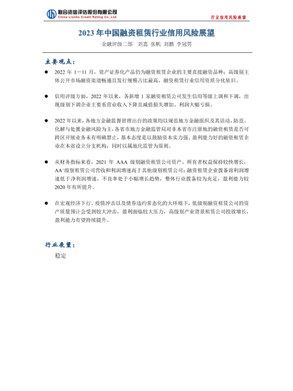 【联合资信】【2023】2023年中国融资租赁行业信用风险与展望-11页