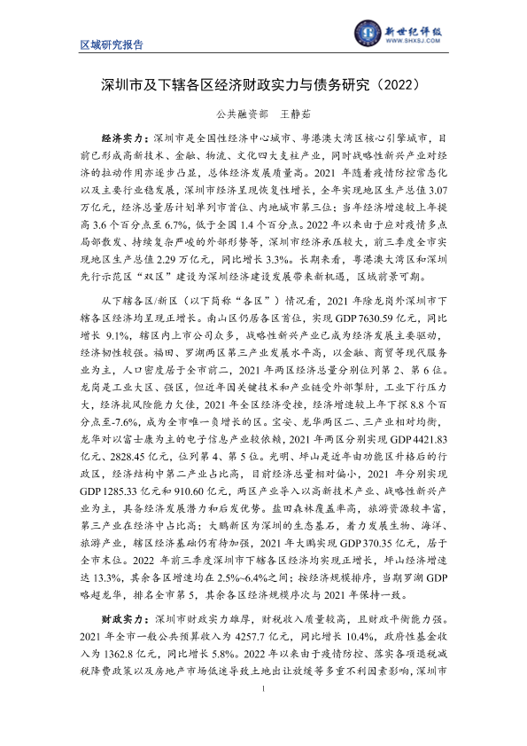 【新世纪评级】【2022】深圳市及下辖各区经济财政实力与债务研究(2022)-19页