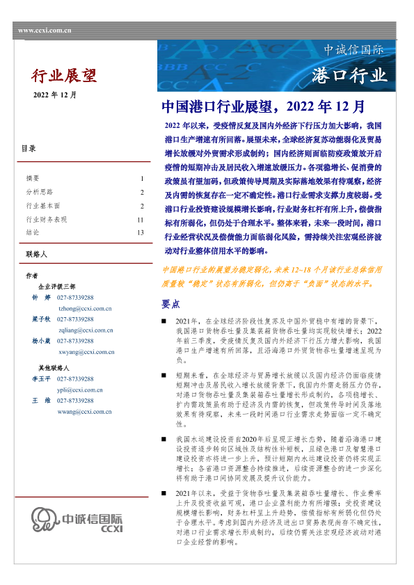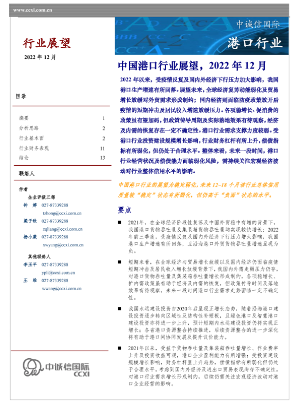 【中诚信国际】【202212】中诚信-2022年中国港口行业展望-17页
