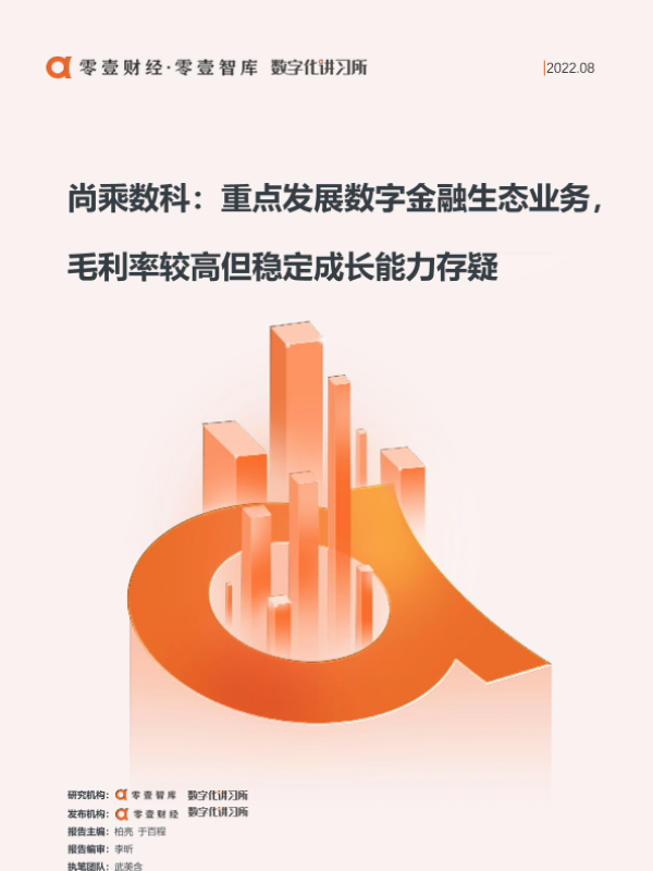 【零壹智库】【202208】零壹金融科技案例系列报告-尚乘数科:重点发展数字金融生态业务,毛利率较高但稳定成长能力存疑-16页