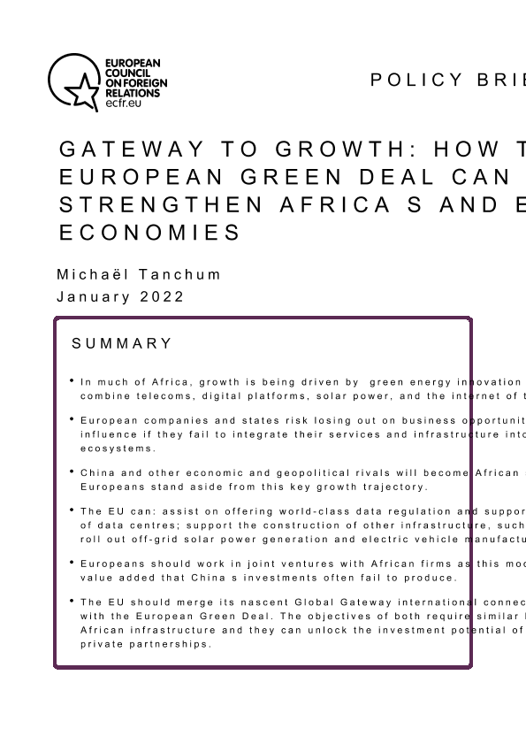 【欧洲对外关系委员会】【202201】增长之门:欧洲绿色协议如何加强非洲和欧洲经济-30页