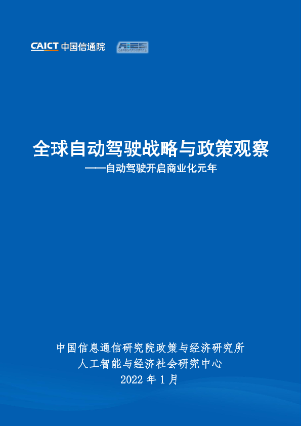 【中国信息通信研究院政策与经济研究所 人工智能与经济社会研究中心】【202201】全球自动驾驶战略与政策观察-自动驾驶开启商业化元年-36页