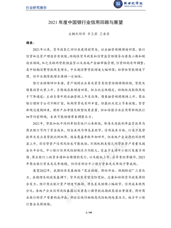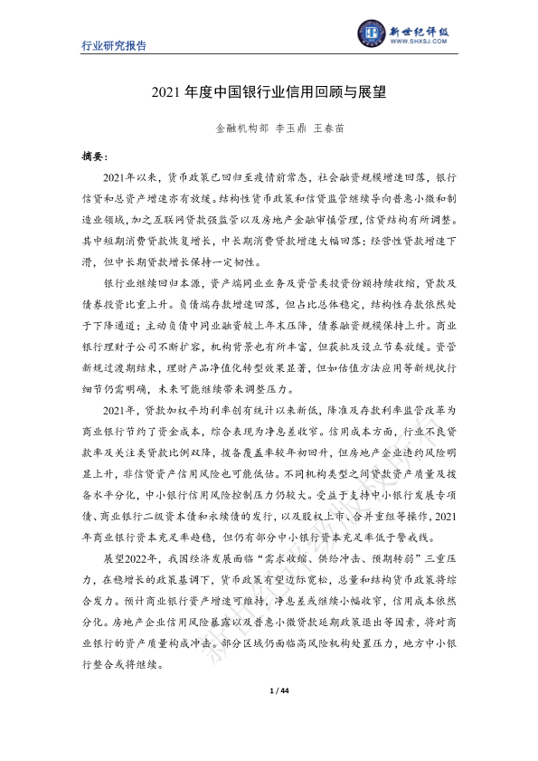 【新世纪评级】【2021】2021年度中国银行业信用回顾与展望-44页