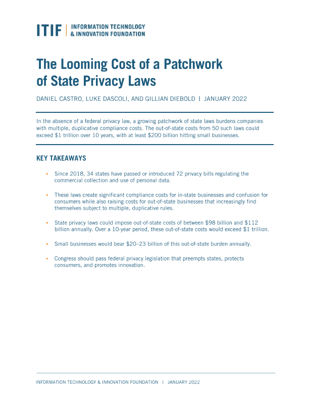 【INFORMATION TECHNOLOGY & INNOVATION FOUNDATION】【202201】在没有联邦隐私法的情况下,各州法律的不断拼凑给公司带来的合规成本-40页