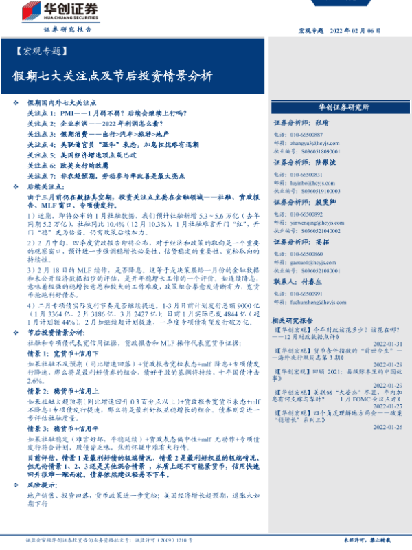 【华创证券】【20220206】【宏观专题】假期七大关注点及节后投资情景分析-26页