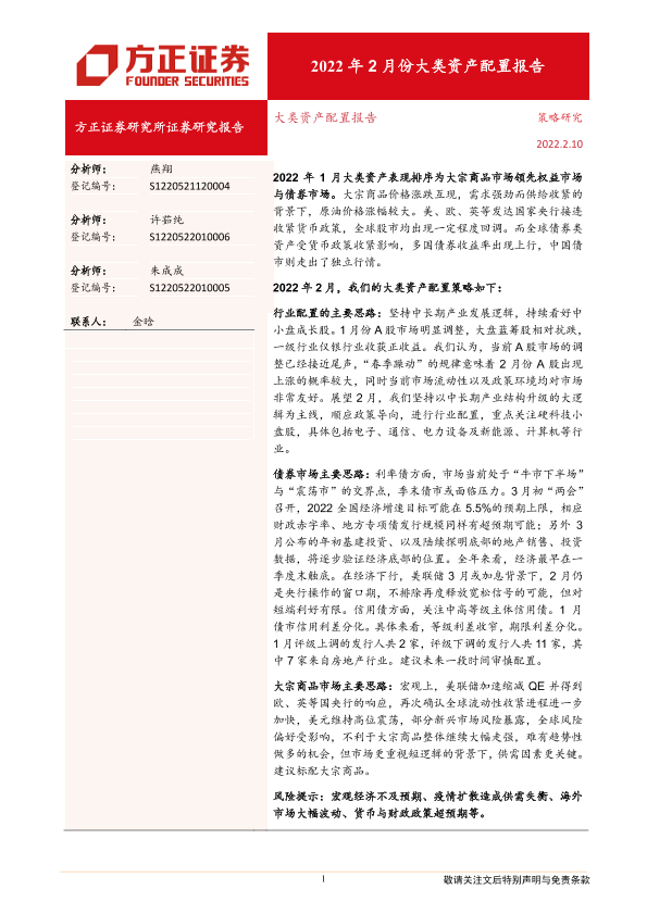 【方正证券】【20220210】2022年2月份大类资产配置报告-21页