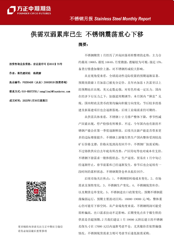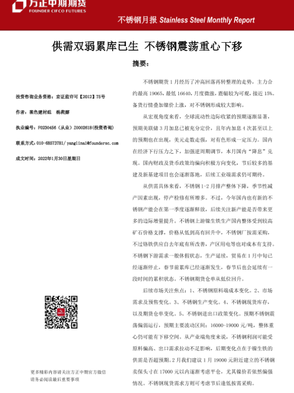 【方正中期期货】【20220130】不锈钢月报-20220130-20页