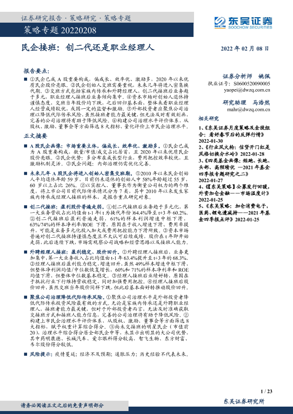 【东吴证券】【20220208】策略专题:民企接班,创二代还是职业经理人-23页