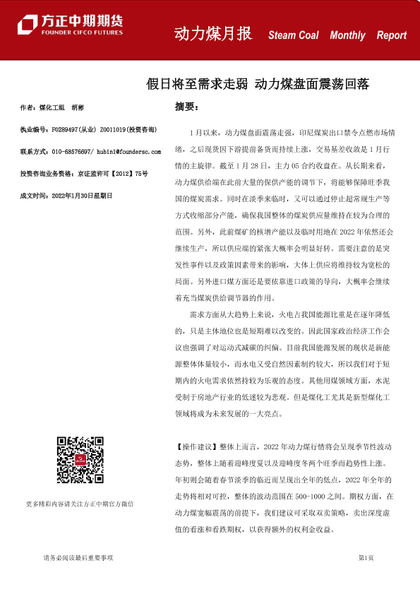 【方正中期期货】【20220130】动力煤月报-20220130-31页