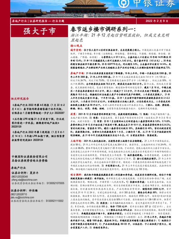【中银证券】【20220209】房地产行业春节返乡楼市调研系列一:浙江平湖,21年12月起信贷明显放松,但成交未见明显起色-21页