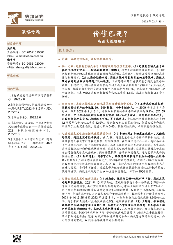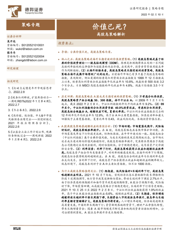 【德邦证券】【20220210】高股息策略解析:价值已死?-19页