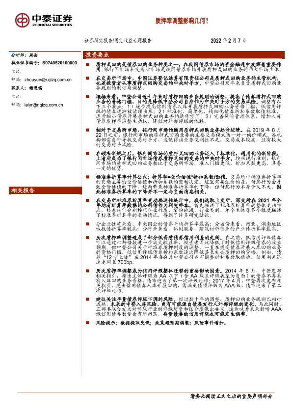【中泰证券】【20220207】固定收益专题报告:质押率调整影响几何?-23页