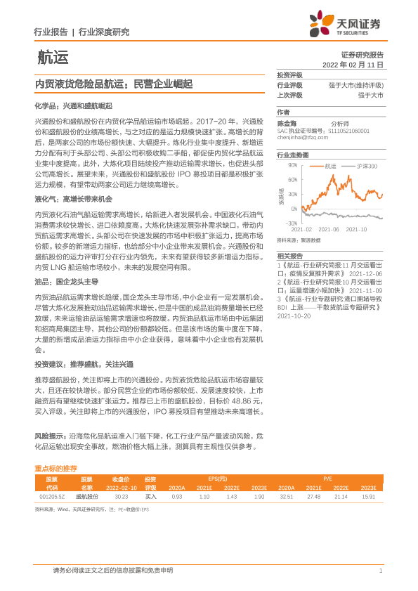 【天风证券】【20220211】航运行业深度研究:内贸液货危险品航运,民营企业崛起-18页