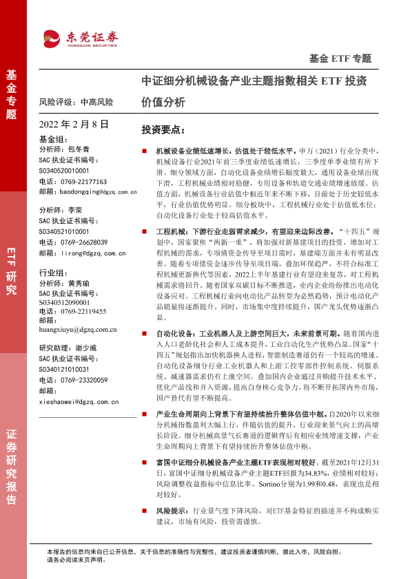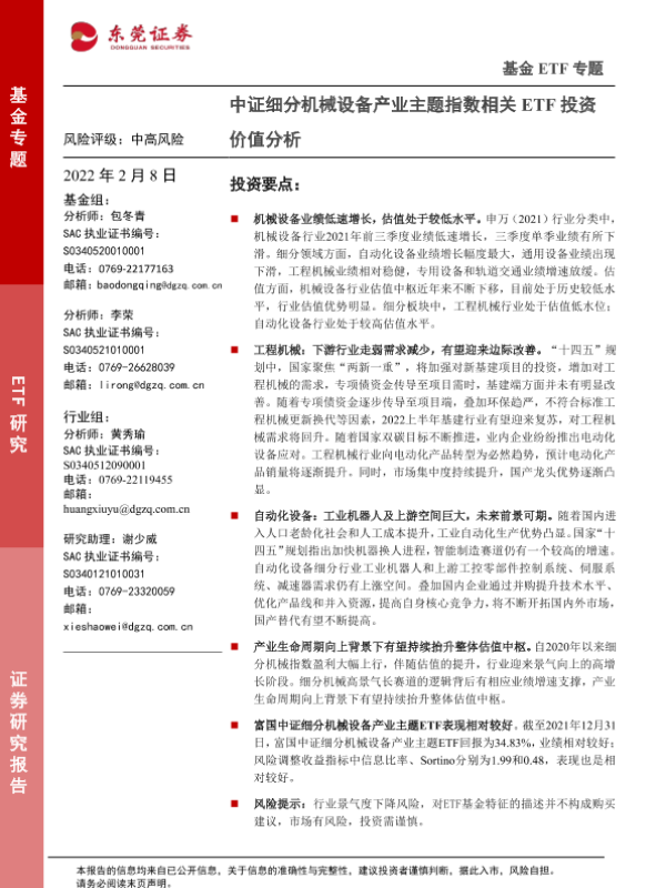 【东莞证券】【20220208】基金ETF专题:中证细分机械设备产业主题指数相关ETF投资价值分析-33页