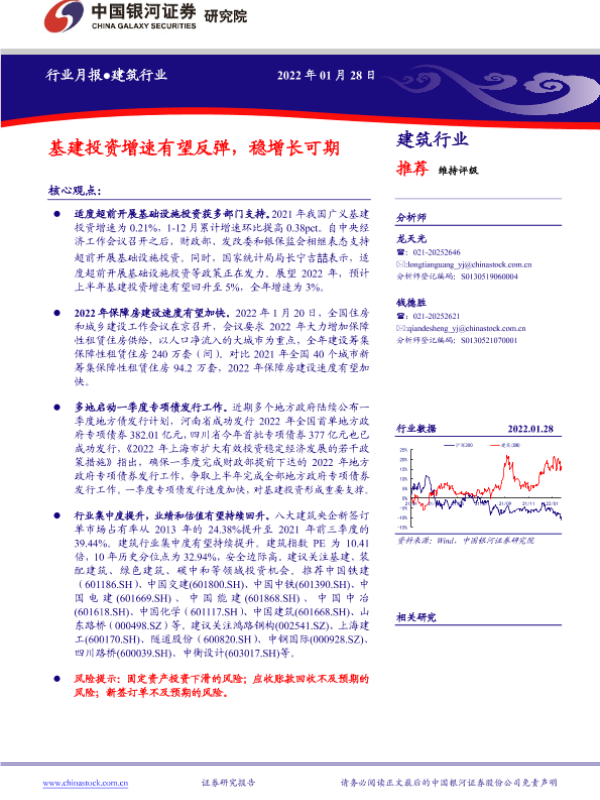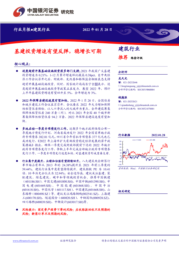 【银河证券】【20220128】建筑行业月报:基建投资增速有望反弹,稳增长可期-20页